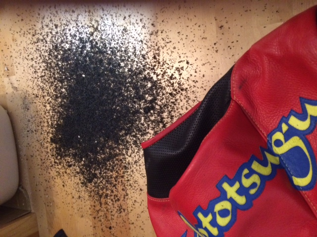 私のツナギです。メーカーはT&Tでいつ作ったかなぁ。もう10年くらい前になるかも。作った後に諸事情によりレースできなくなって眠ってました。