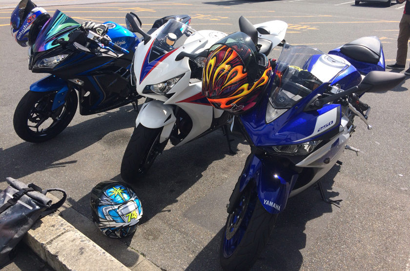 遅れること15分、Ninja250が到着。モリハンは自分が遅れたことにすら気づいてません(笑