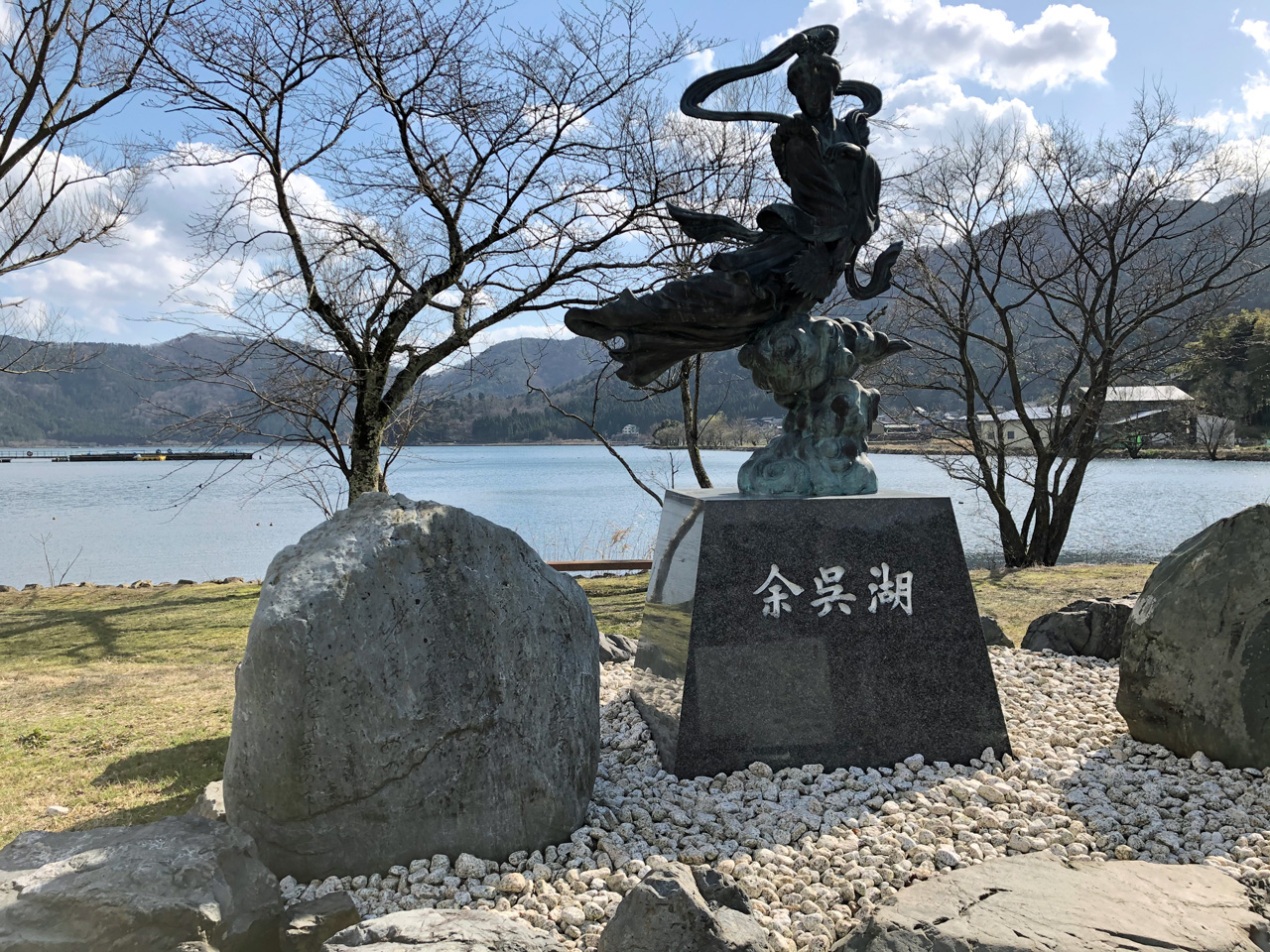 松にかけるのが他の地域で多い中、余呉湖は柳に羽衣を掛けたとされているみたい。(Wikipedia)その柳も台風で倒壊したそうです。