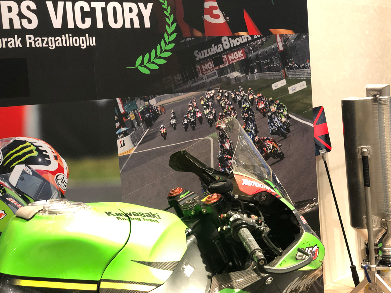 8耐優勝車両がそのままの状態っぽく展示されてた。