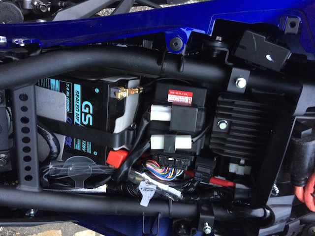 メインシートの下にはウインカーのフラッシャーやバッテリーが格納されている。