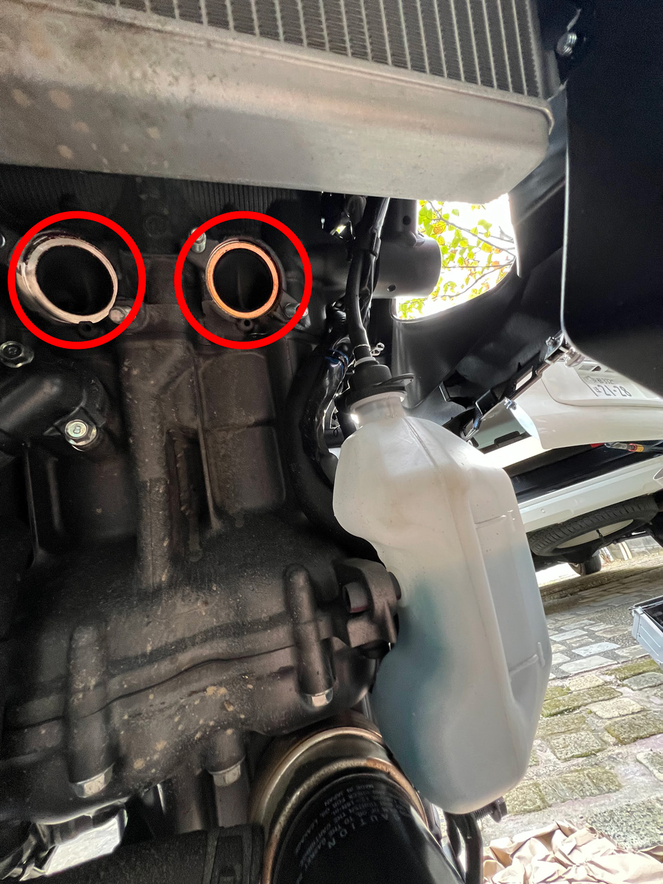 銅色のガスケットがフランジに残る場合があるのでしっかりと確認してください。基本的にガスケットは再利用不可なので残っている場合は取り外します。しっかり取り外しを確認しておかないとガスケットが二重になったりします。