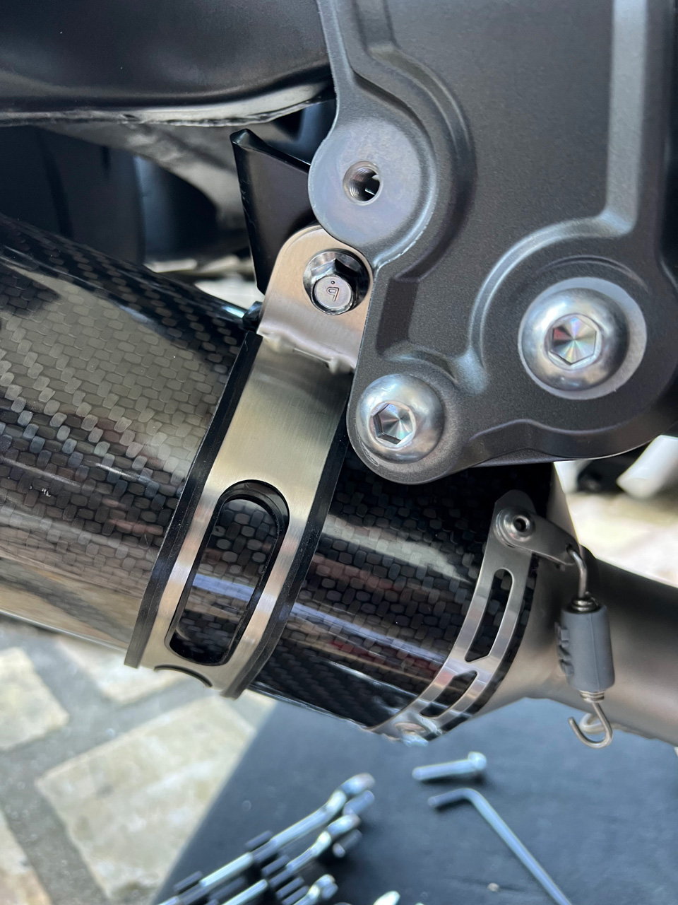 サイレンサーとエキパイをスプリングで固定する。スプリングまでいちいちカッコいい。