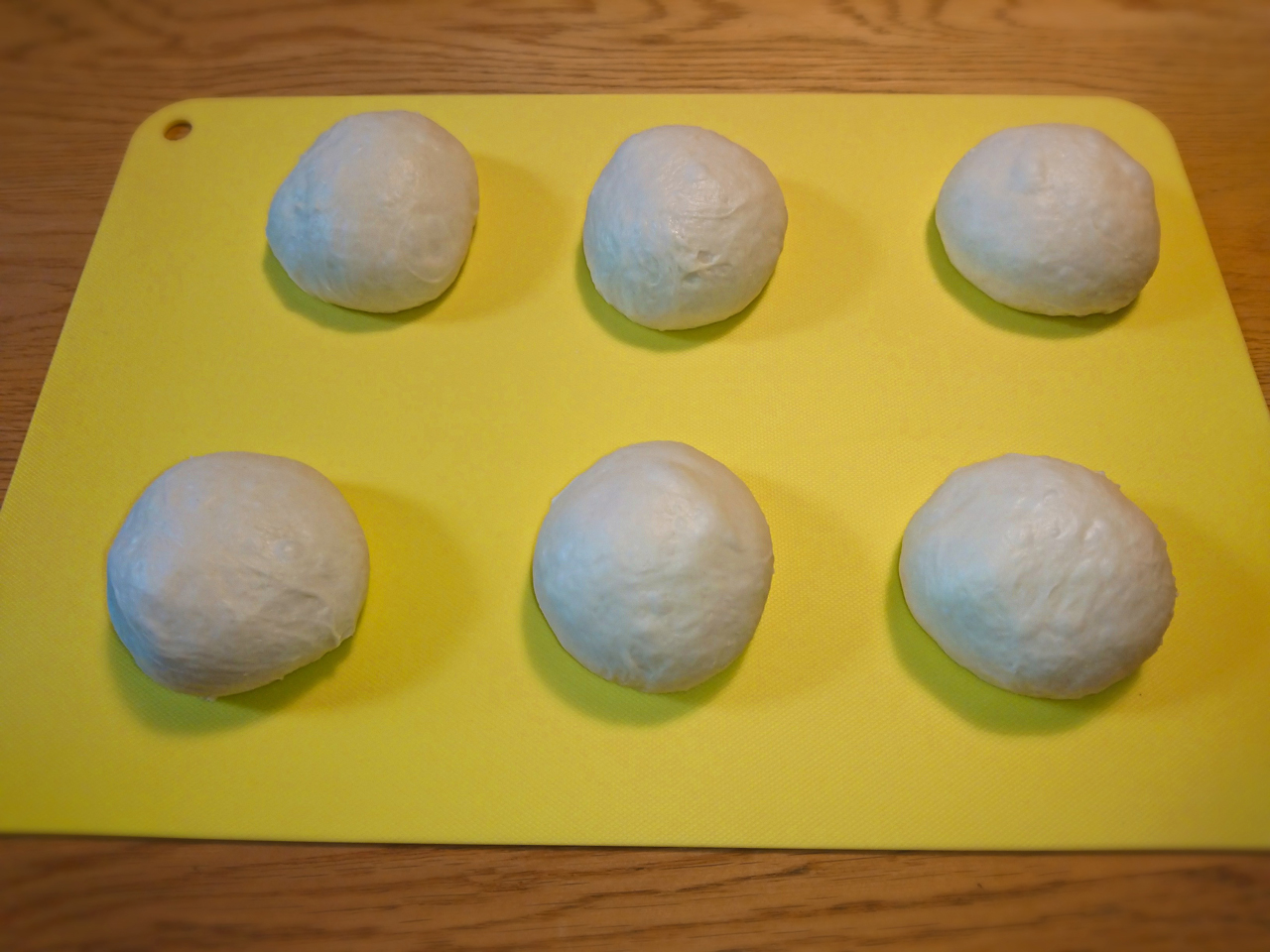 6個の型であまり量がないので、キッチンエイドを使わず普通のホームベーカリーで捏ねました。