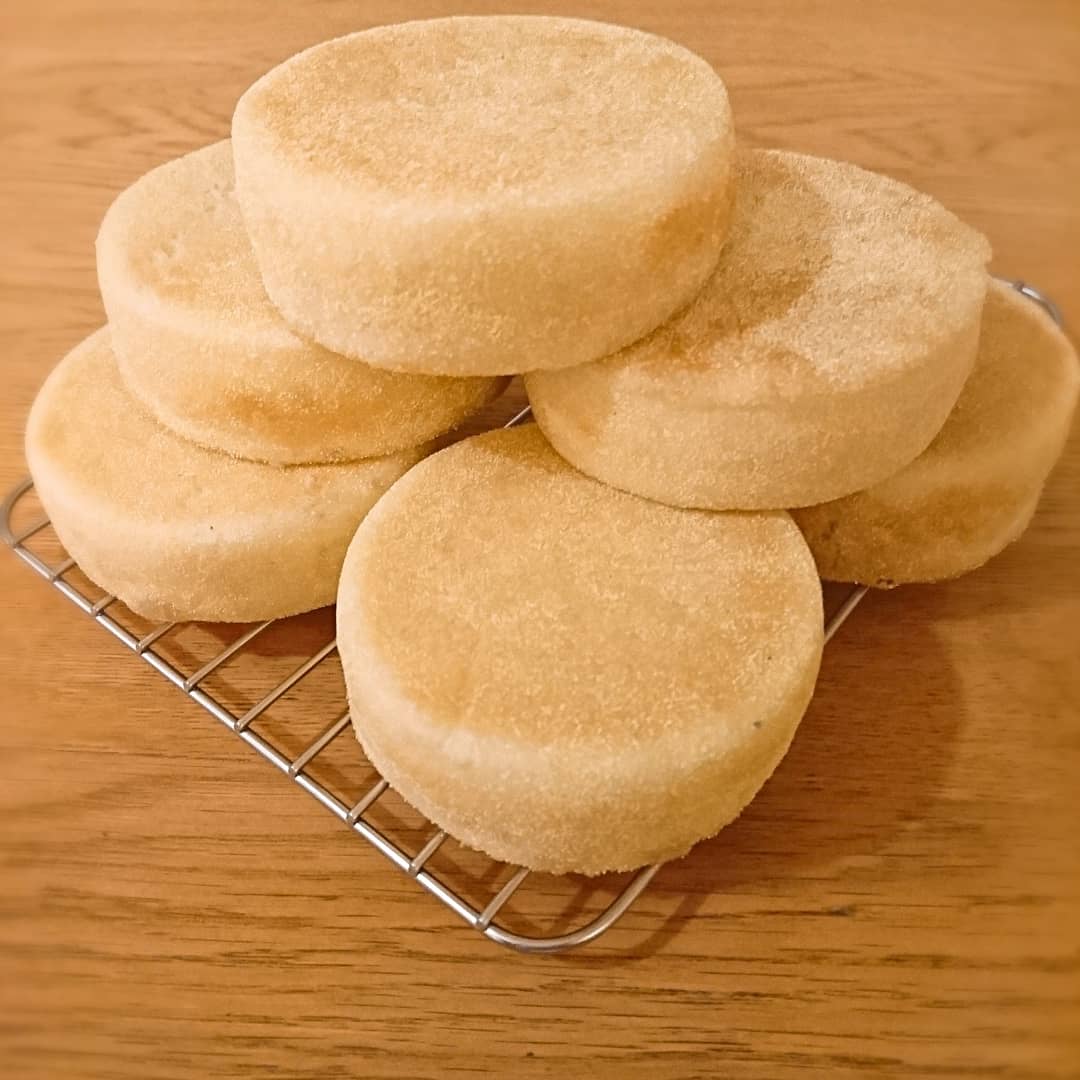 嫁が初めてイングリッシュマフィンを焼いたようです。