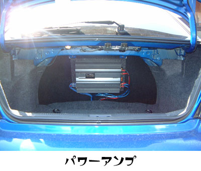 アンプはトランクの壁面に取り付け、荷室の機能を極力損なわないようにしていました。