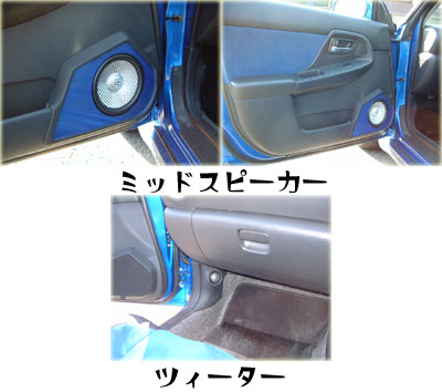 スピーカーのMIDはバッフルボードを製作しデッドニングして純正位置にインストールし、ツィーターはキックボードにインストールしていました。