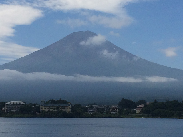 最終日はようやく晴れたので、従姉妹との待ち合わせ時間まで河口湖から富士山を望むことに。