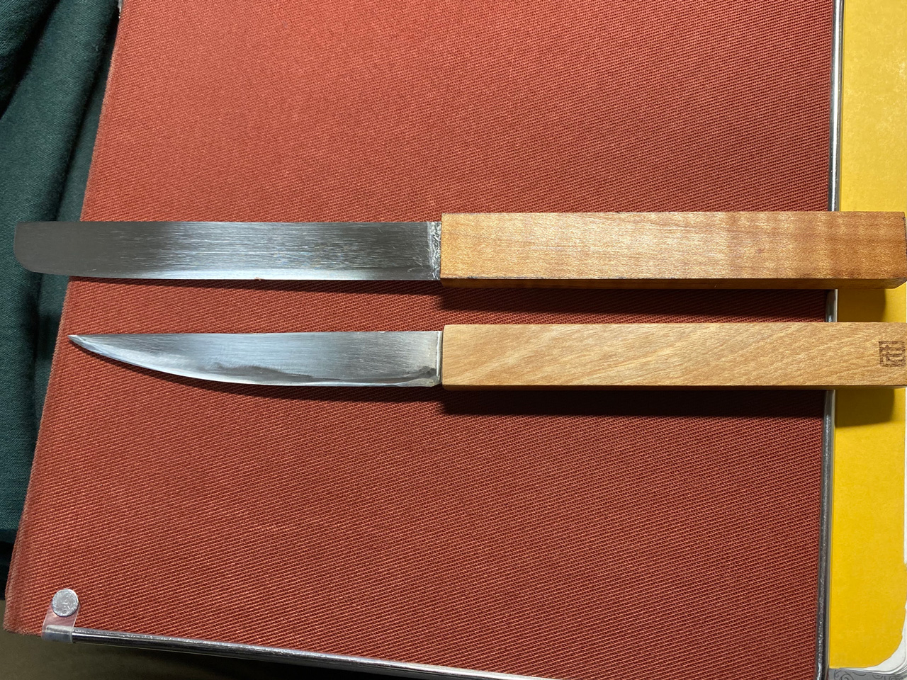 日本料理の薄刃包丁をイメージしています。峰を使って切ってしまう方が多発!分かりにくかったのかなぁ。俺も峰で切ってたけど。