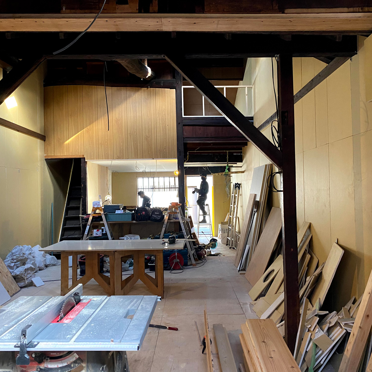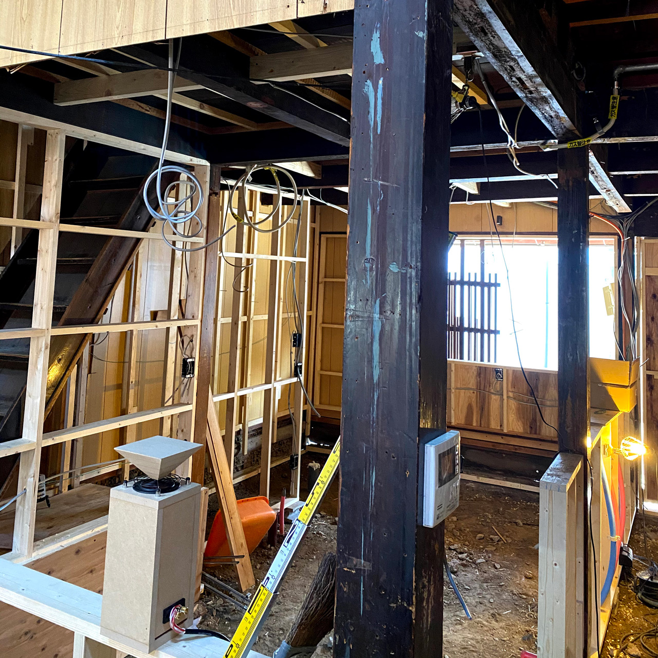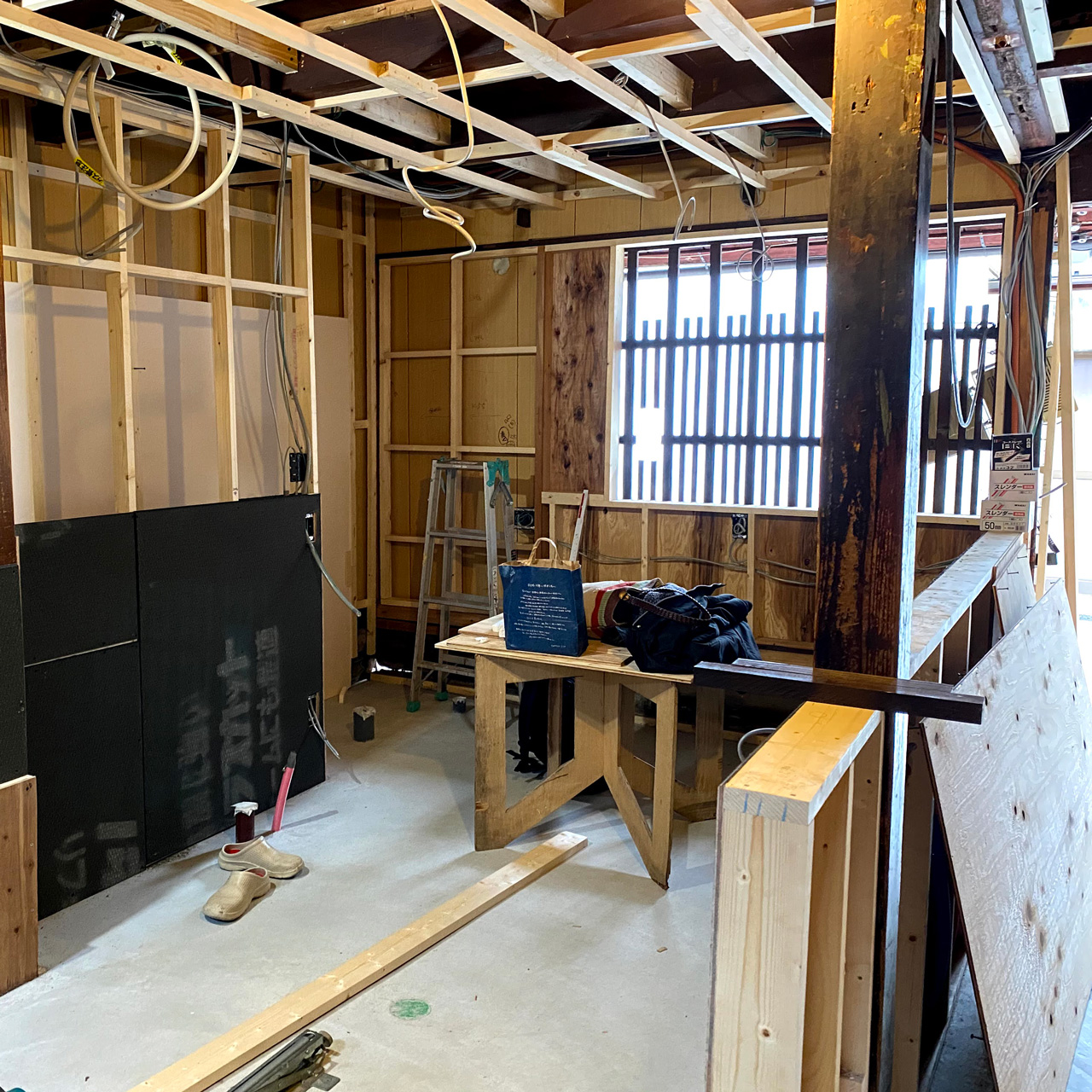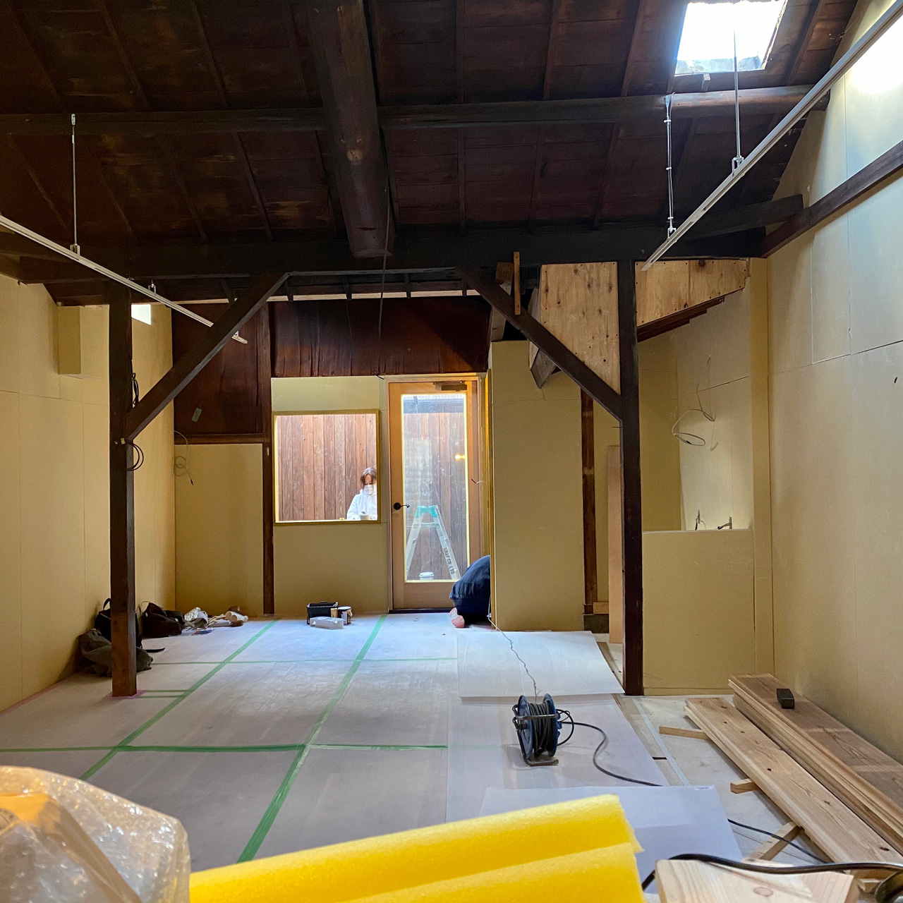 10月から店舗物件の工事を開始しました。手伝える所はDIYする契約で、大工さんと一緒に作業していました。