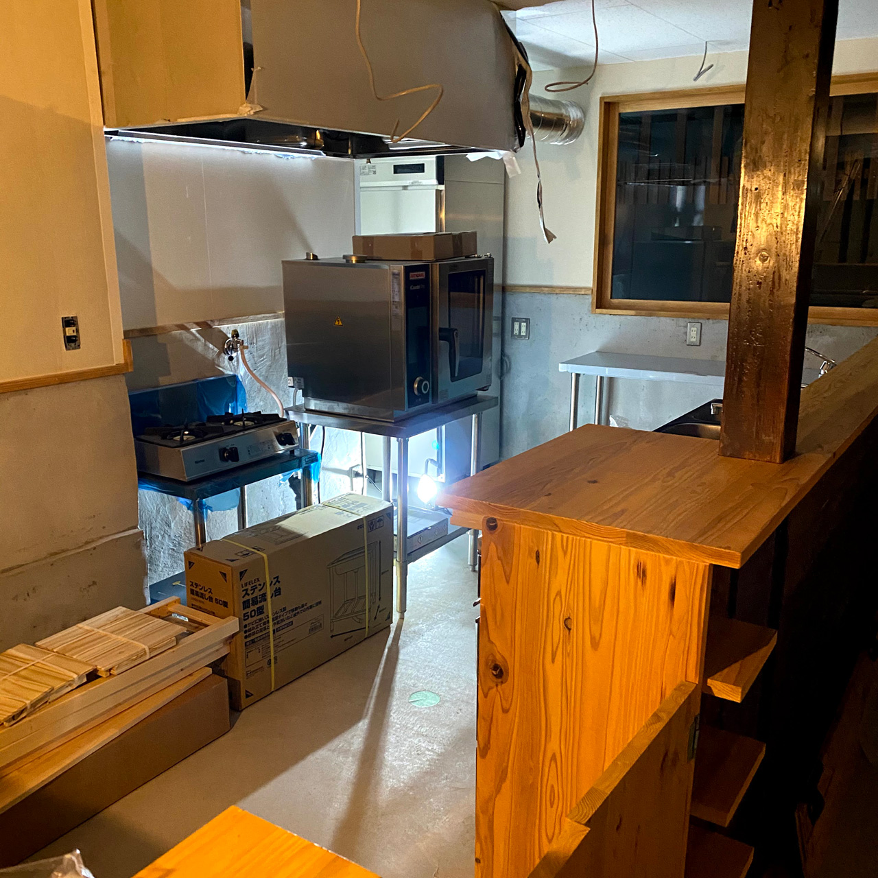 機材の手配や、お店の工事手伝い。漆喰を壁に塗ったりと本当に忙しかったです。様々な箇所への塗装を家内と二人で大晦日までやってました。