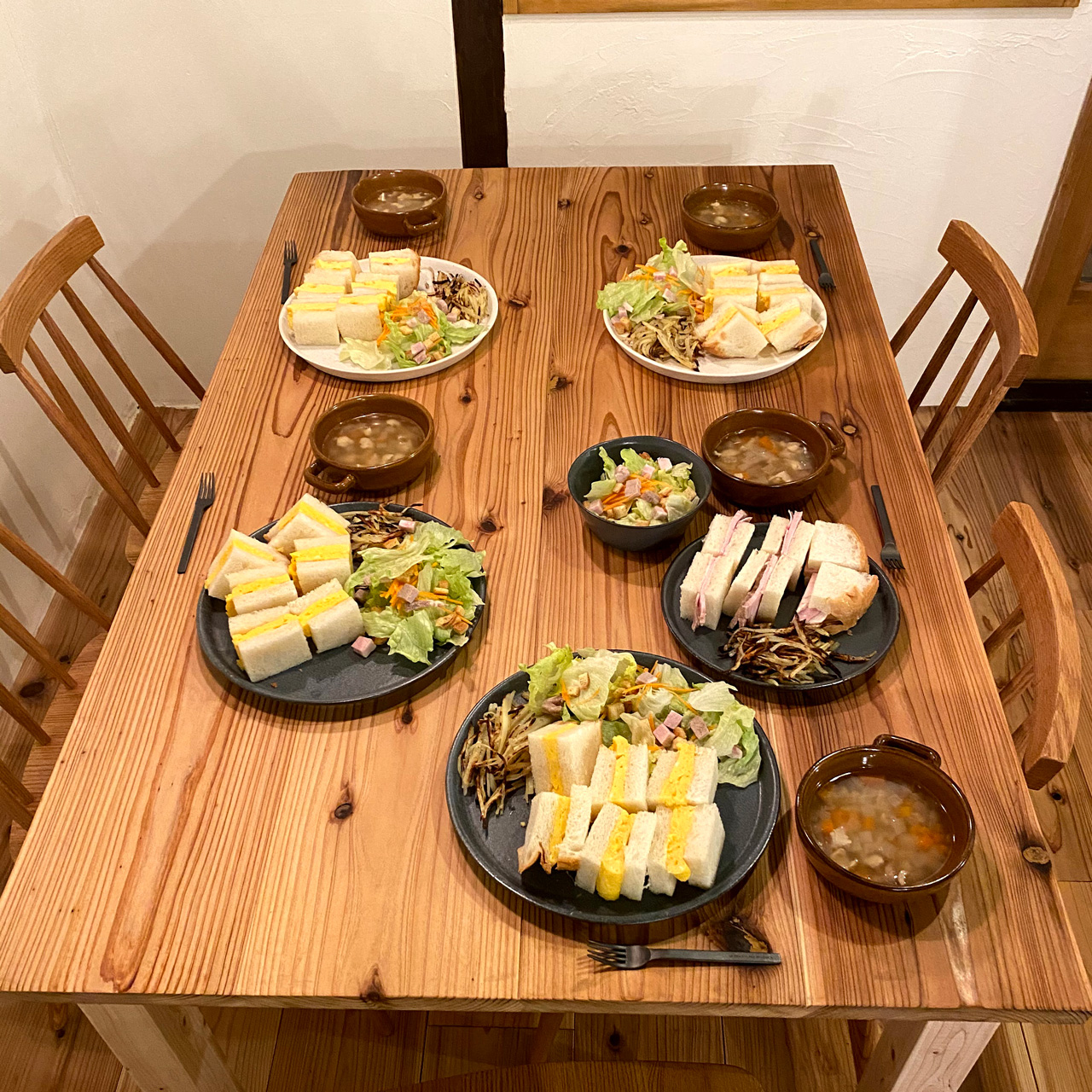 食器の選定が間に合わず、土壇場になって急場しのぎに用意したり、作ってみたテーブルの強度が足らず、金具を使って改良したり
