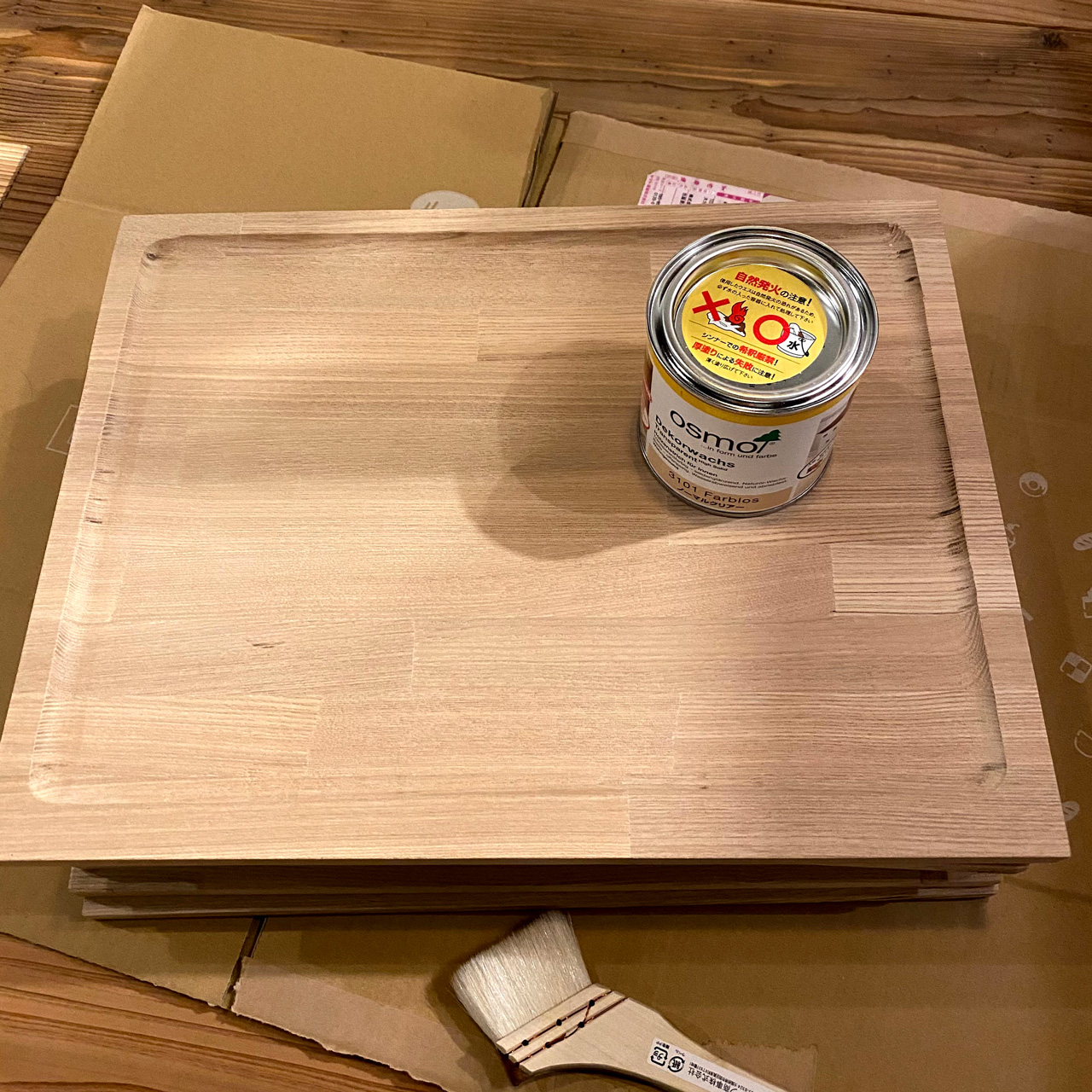 自作したお盆を塗装