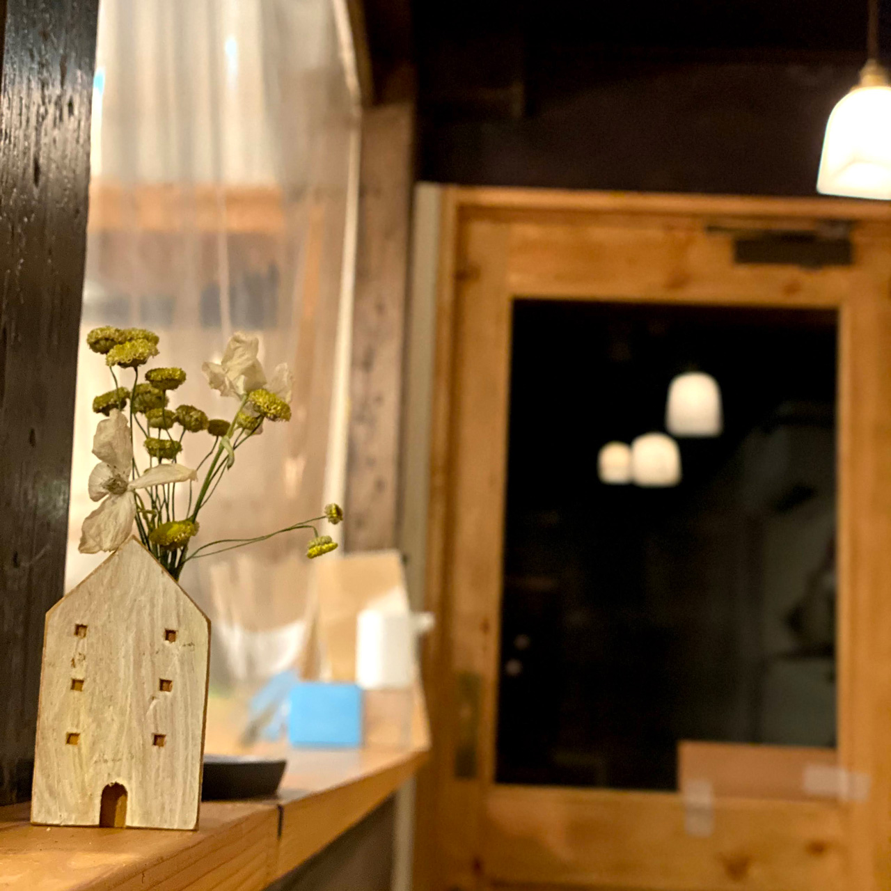 夜は18時まで。レトロを意識したので電球が似合います