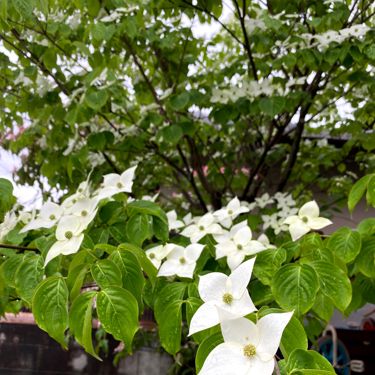 ヤマボウシの花が満開