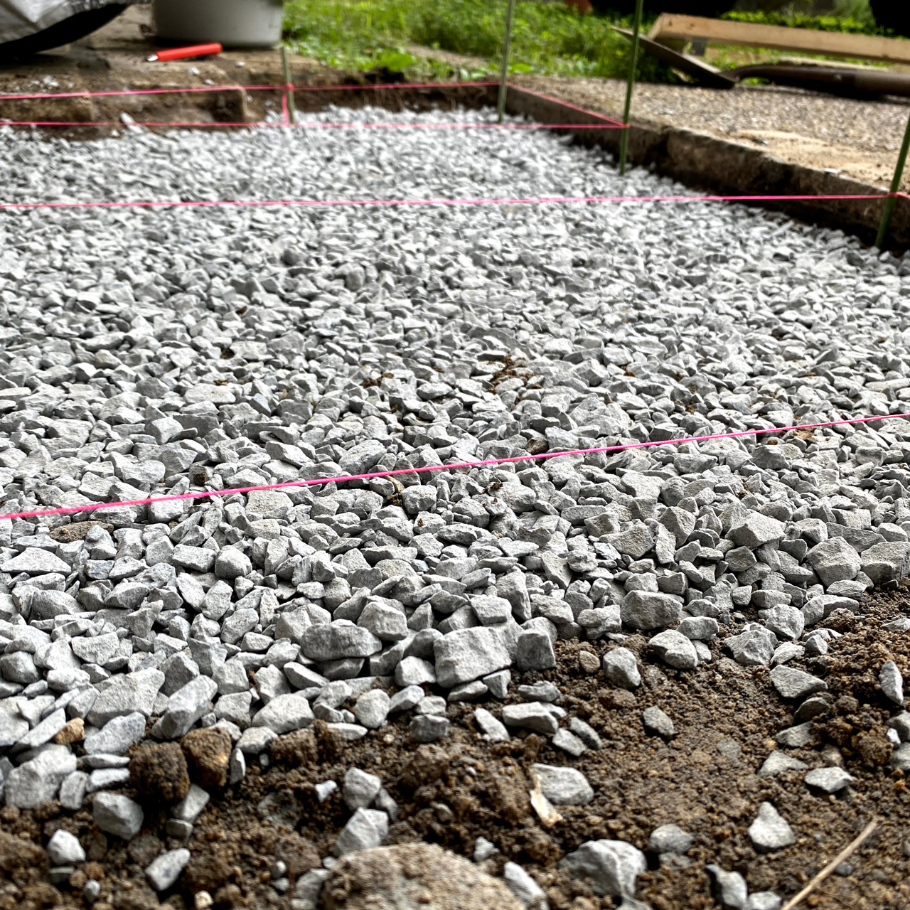 ムカついたので土を退場させ、固まる防草砂で目地を埋めて固めてやりましたよ。下には一応砕石を敷き詰めて陥没防止してあります。