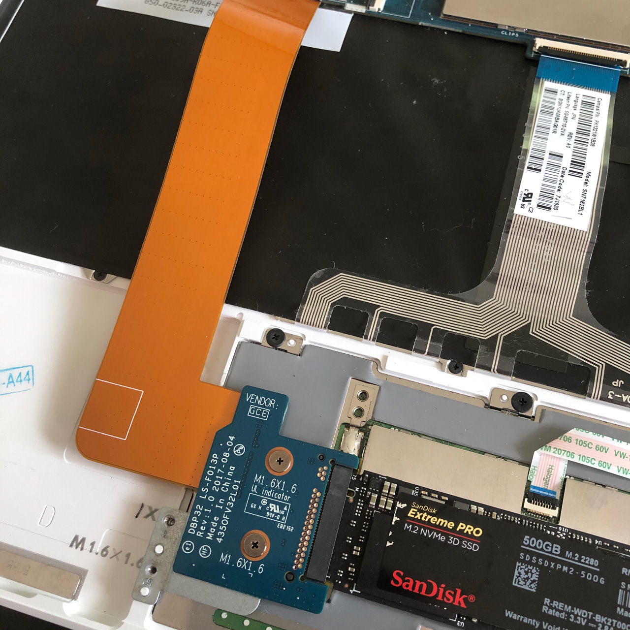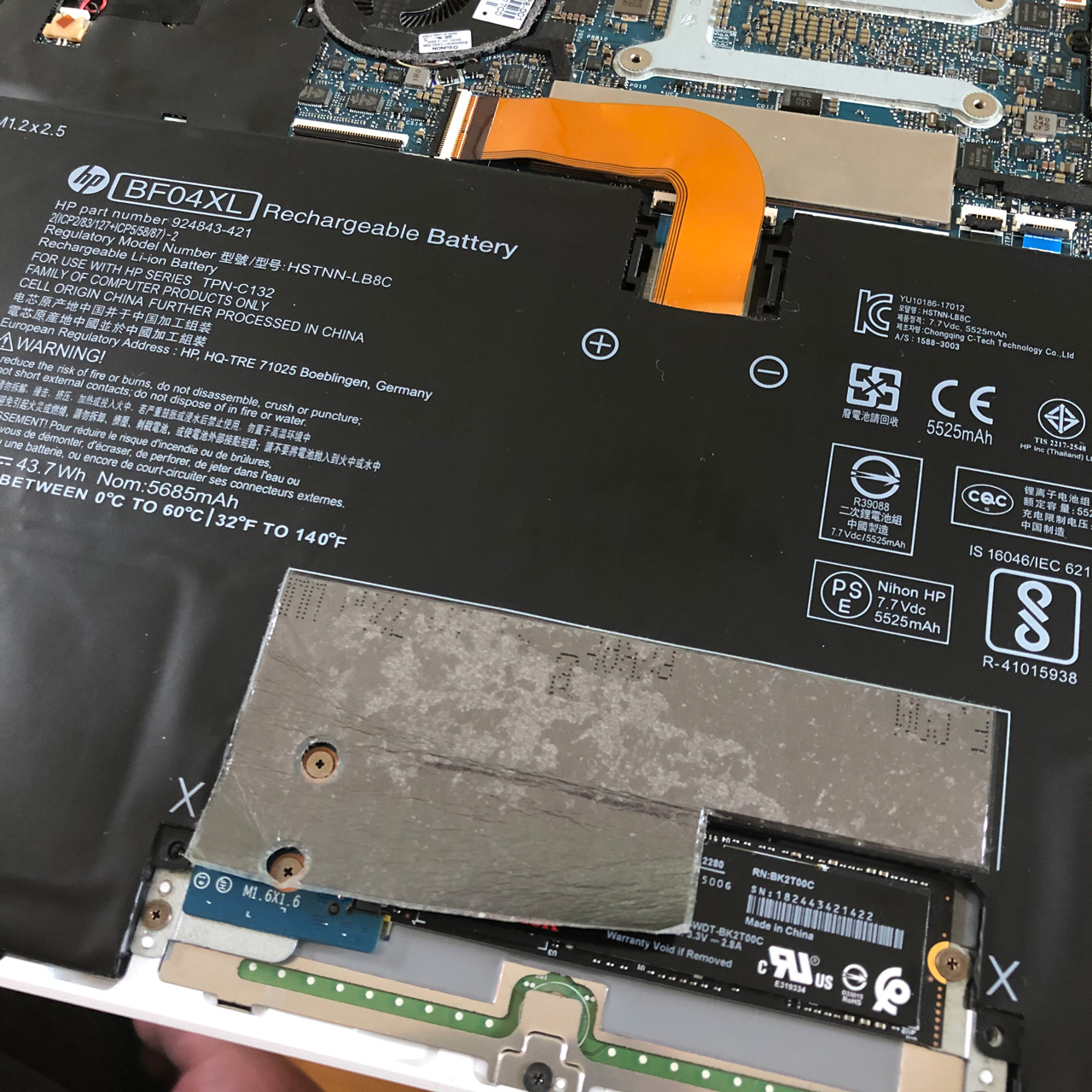SPECTREはPCを裏から見てバッテリーの下側にSSDのケーブルが這っているのですが、バッテリーを外すことでSSDケーブルの圧迫が緩んで1日動くことが出来たのではなかろうか。