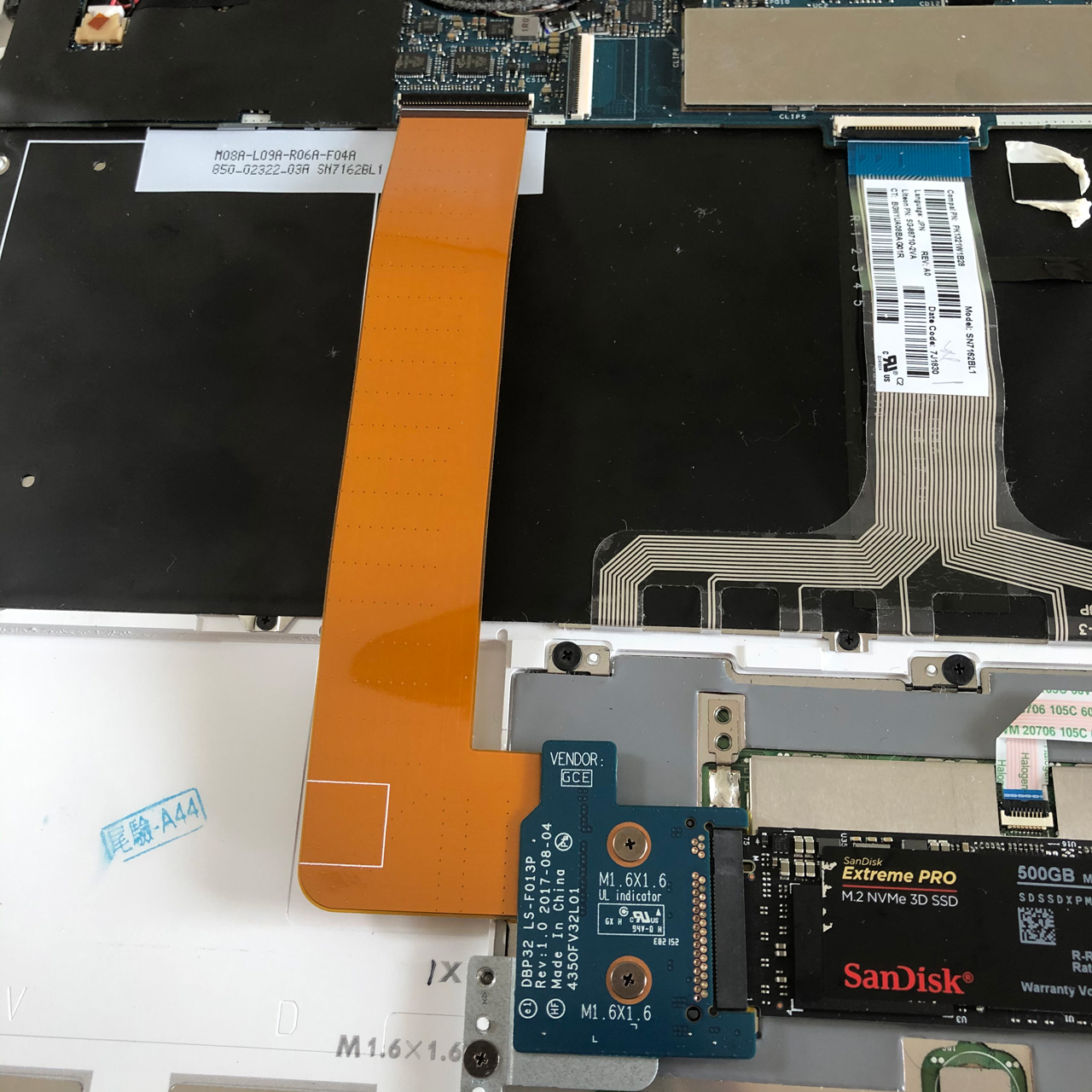 前回修理したMacBookPROも結局HDDからマザーへと繋がるフレックスケーブルの不調が原因でした。実のところ、この圧迫断線の書き込みを見る前からSPECTRE13も配線であろうことは結構自信があった。