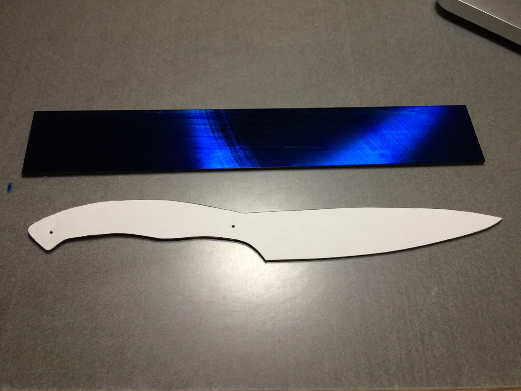 今回は料理に使える、ペティナイフに仕上げてみようと思います。型紙に考えたデザインを転写して切り出しました。