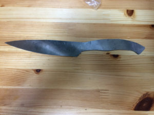 最初の鉄板ではホンマにできるんかと思いましたが形ができればナイフに見えてくる!まだまだ先長いけど・・・。