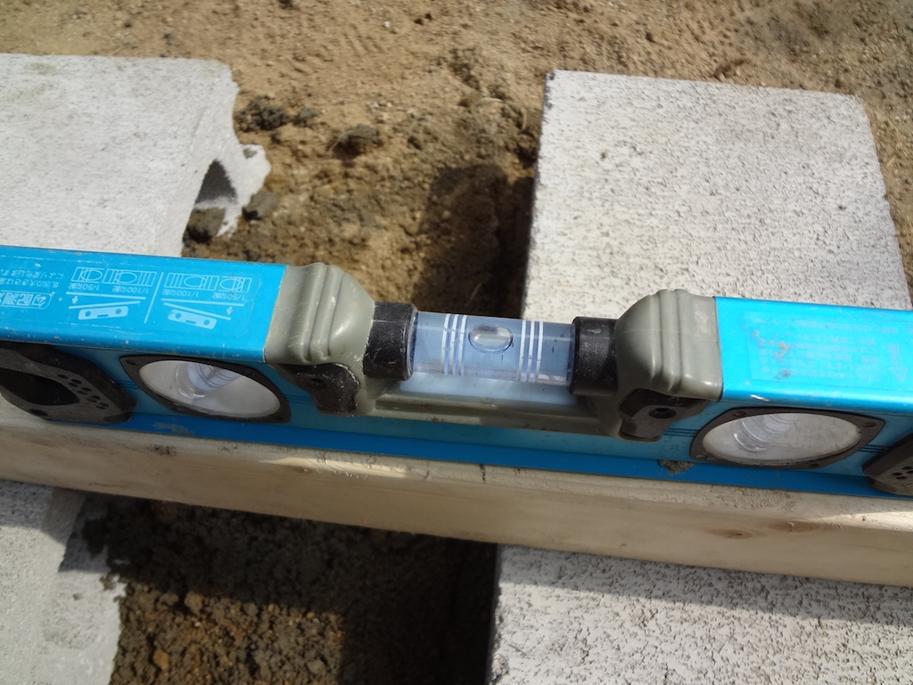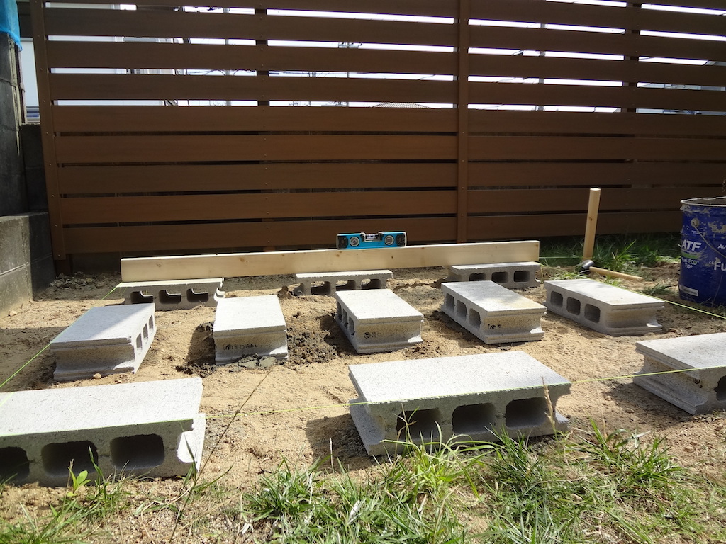 結構硬化に時間がかかるそうです。建てる作業は恐らく8月10日以降になると思います。こういう細かい作業は全くのDIYではやらなかっただろうなぁ。多分水平を出してブロック置いてしまいだったと思います。