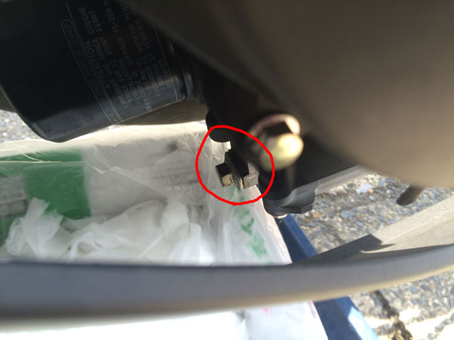 ドレンボルトの上にオイルフィルターも見えています。こちらも特段カウルを外す必要なし。