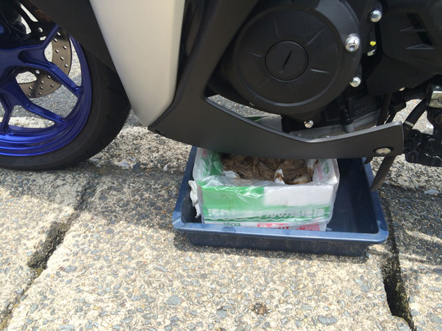 ちなみに、YZF-R25はアンダーカウルを外すことなくオイル交換が可能です。