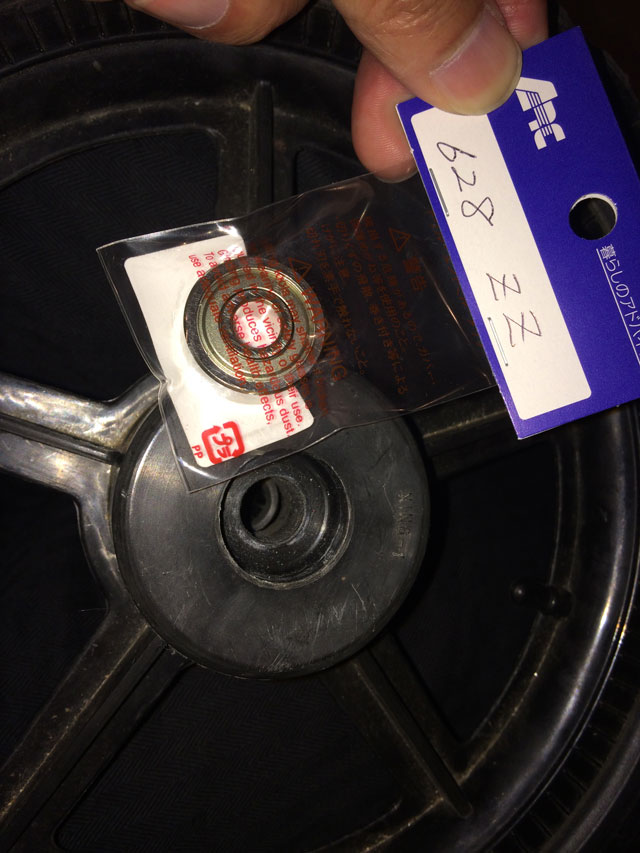 お隣から頂いたチビ3号用のストライダーの車輪ベアリングが壊れたそうです。だいぶ使い込んでいるので仕方ないな!
