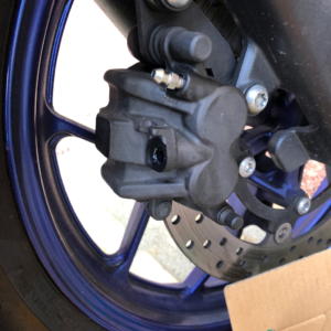 キャリパー側のバンジョーボルトも外します。こちらも12ミリ。