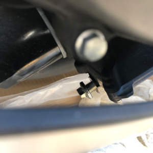 8ミリのボルトを緩めてブレーキラインをサポートしている金具を外します。私はこの金具を新しいホースにも利用しました。