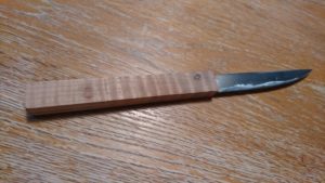 焼き入れ完了からしばらくかかりましたが、ステーキナイフを一応仕上げることができた。
