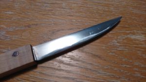 相変わらずヘタクソ・・・。しかもステーキナイフなのにかなり砥いでしまった。