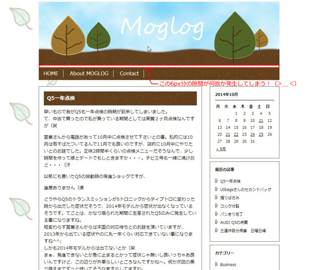一番解決したかったのがヘッダーとメニューバーに6px分の隙間ができてしまう!と言うもの。